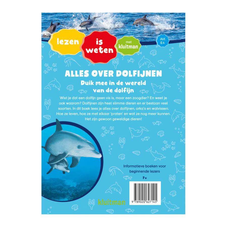 Kinderen leren in Alles Over Dolfijnen AVI E4 hoe dolfijnen leven, hoe ze met elkaar ‘praten’ en waarom het zulke slimme dieren zijn. Ook komen orka’s en walvissen uitgebreid aan bod. Het boek laat zien hoe bijzonder deze zeedieren zijn en waarom ze tot de verbeelding spreken. Het boek combineert duidelijke uitleg met interessante weetjes, zodat kinderen spelenderwijs hun leesvaardigheid én kennis vergroten.