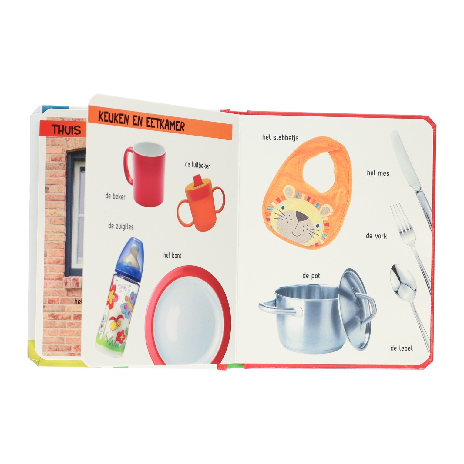 Het Beeldwoordenboek – Kijk Eens Wat Zie Je Daar? Eerste Woorden is een vrolijk en leerzaam beeldwoordenboek dat jonge kinderen uitnodigt om spelenderwijs de wereld te ontdekken. Op overzichtelijke, op onderwerp geordende dubbele pagina’s staan duidelijke kleurenfoto’s die perfect aansluiten bij de belevingswereld van peuters. Dit beeldwoordenboek helpt kinderen vanaf 12 maanden bij het herkennen van objecten, het leggen van verbanden en het uitbreiden van hun eerste woordenschat.