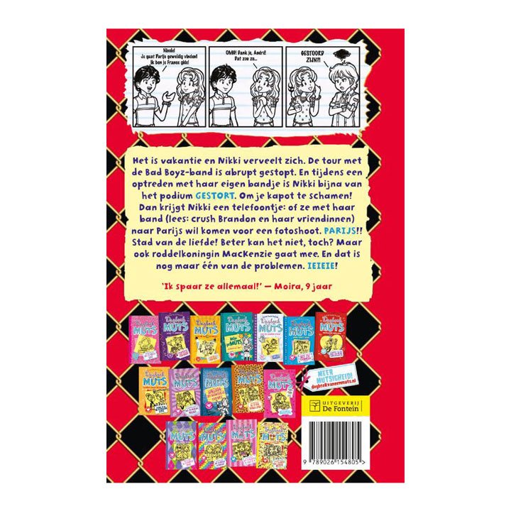 In dit spannende Dagboek van een Muts – Droomreis Parijs?! verveelt Nikki Maxwell zich tijdens de vakantie. De tour met de Bad Boyz-band is plotseling gestopt en tijdens een optreden met haar eigen bandje is ze bijna van het podium gestort. Mega gênant! Maar dan krijgt ze dé kans van haar leven: een uitnodiging voor een fotoshoot in Parijs samen met haar band (inclusief crush Brandon!). Het boek zit boordevol grappige situaties, onverwachte wendingen en natuurlijk de nodige drama – want roddelkoningin MacKenzie reist ook mee… Dit meeslepende leesboek combineert herkenbare tienerproblemen met humoristische illustraties en dagboekfragmenten.