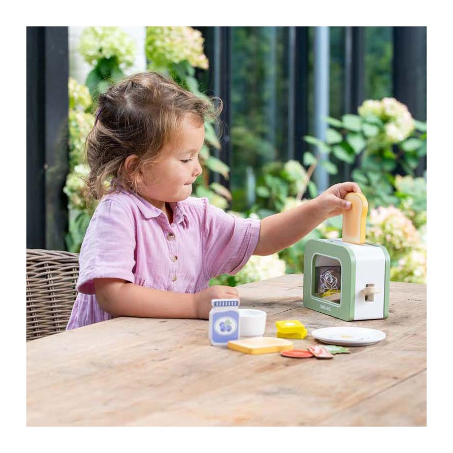 Met maar liefst 13 onderdelen/accessoires biedt deze Houten Broodrooster met Timer eindeloze speelmogelijkheden. Kinderen kunnen hun eigen ontbijt bereiden, broodjes “roosteren” en serveren aan familie of vriendjes. De stevige houten constructie maakt deze broodrooster duurzaam en veilig, ideaal voor dagelijks gebruik.