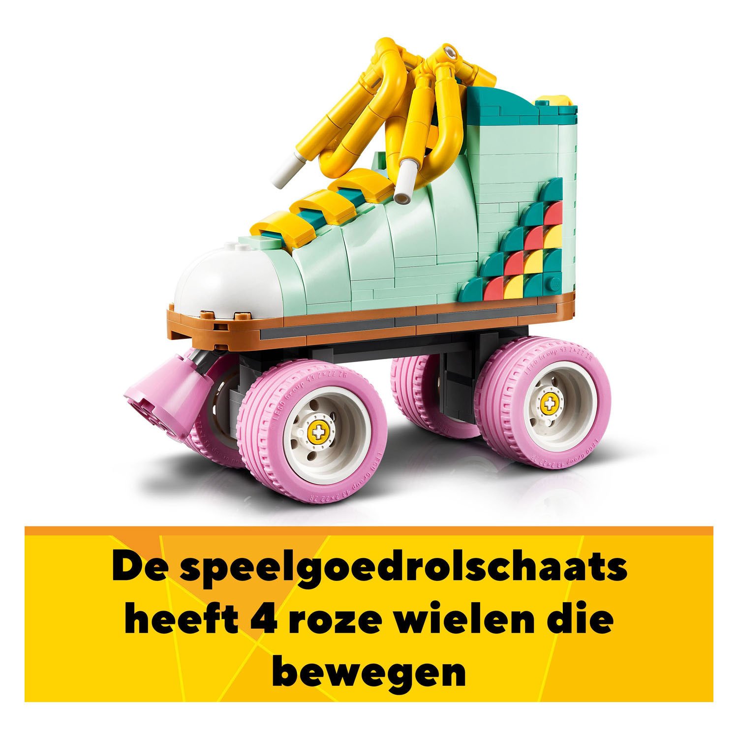 Laat de nostalgie herleven met de LEGO Creator 31148 Retro Rolschaats! Deze kleurrijke 3-in-1 set neemt creatieve kinderen vanaf 8 jaar mee terug naar de jaren ’80, vol vrolijke kleuren en iconische designs. De set bevat een stoere LEGO rolschaats met vier beweegbare roze wielen, een roze remstop en brede gele veters — precies zoals de echte retro klassiekers. Dankzij de vele kleurrijke onderdelen kunnen kinderen de schoen bovendien personaliseren met hun eigen creatieve ontwerpen.