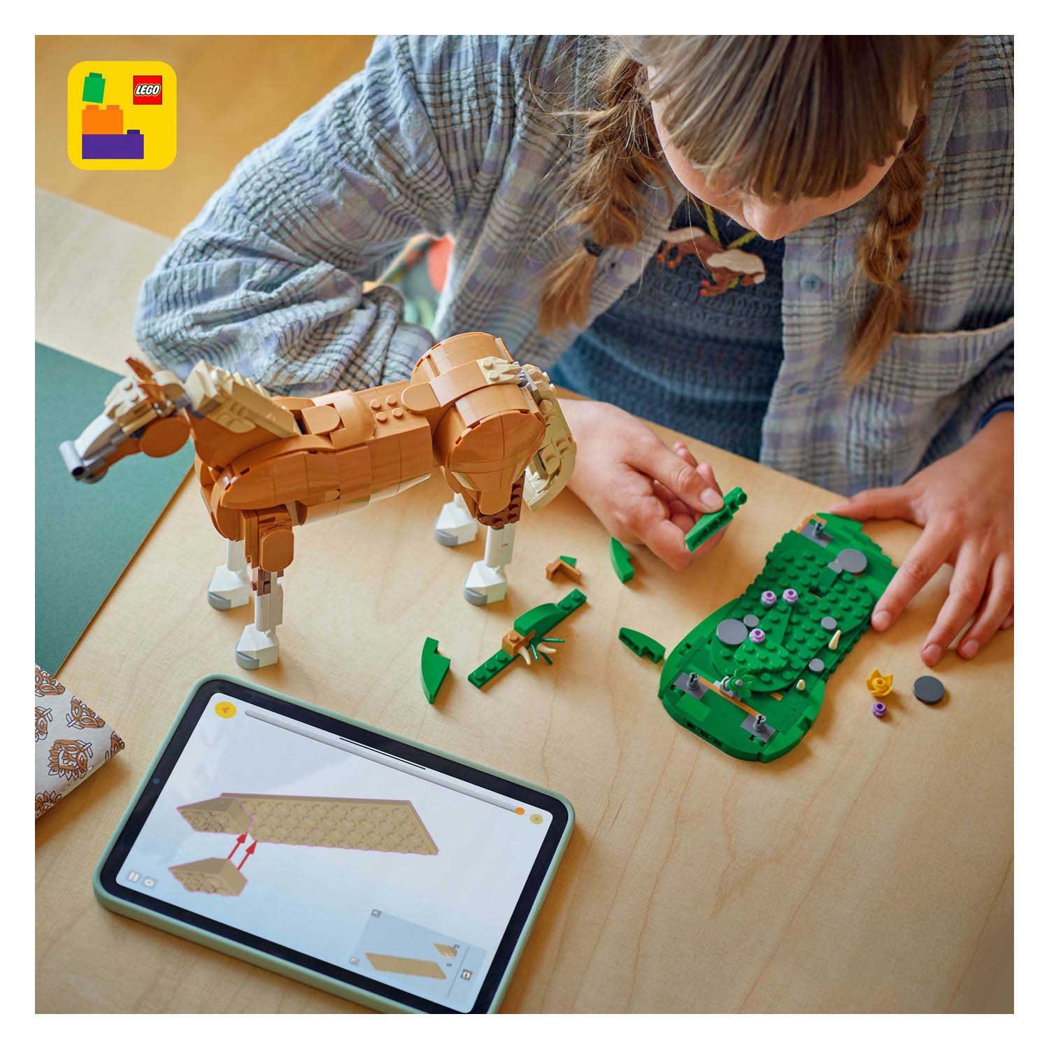 Ontdek de magie van bouwen met de LEGO Creator 31166 Prachtig Paard – een veelzijdige 3-in-1 bouwset die de creativiteit van jonge dierenliefhebbers tot leven brengt! Met LEGO Creator kunnen kinderen vanaf 9 jaar hun fantasie de vrije loop laten door drie verschillende dieren te bouwen uit één set stenen: een elegant paard, een stoere beer met een waterval en een sierlijk hert. Elk model is verstelbaar, wat zorgt voor eindeloos speelplezier en realistische bewegingen.