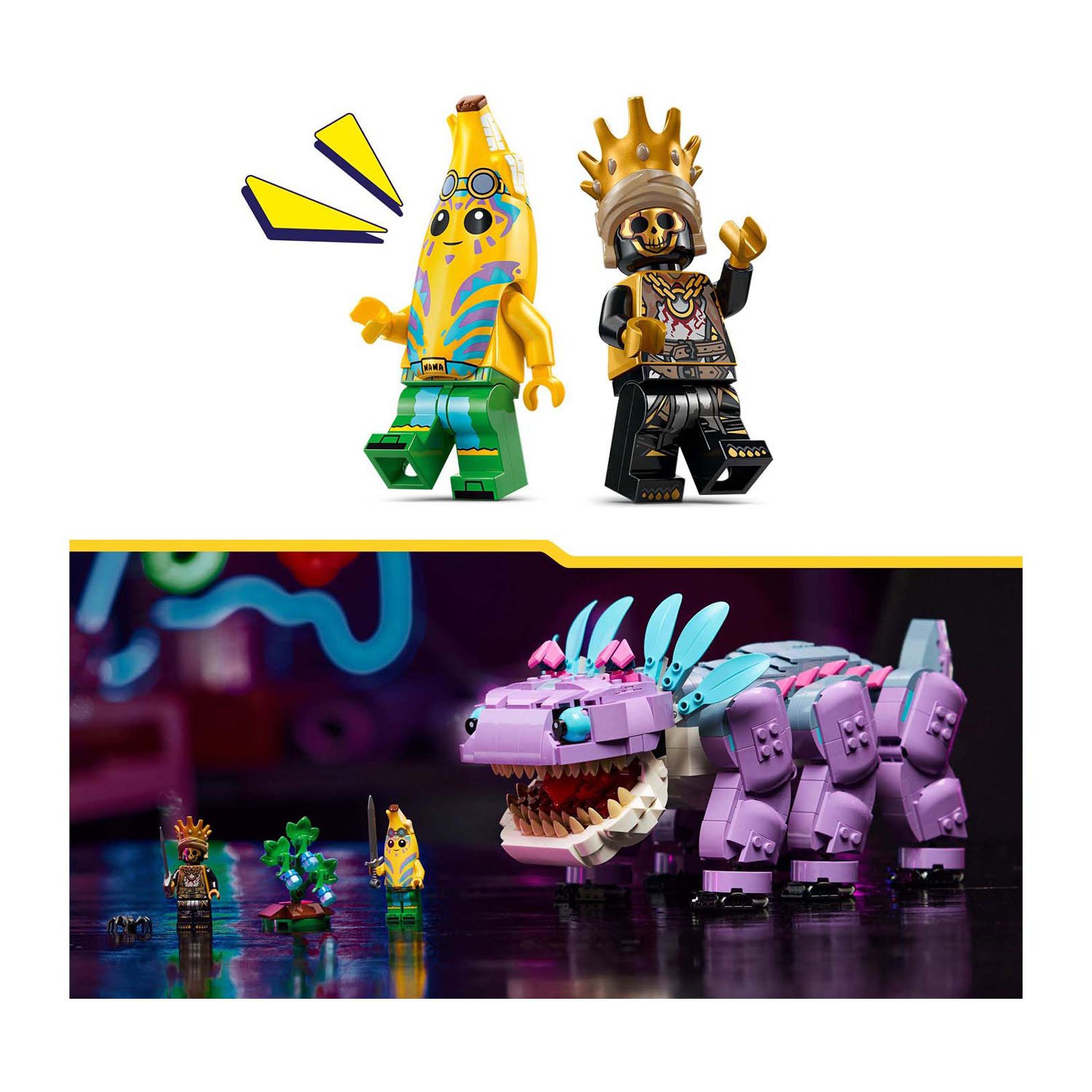 Ontdek de magische wereld van LEGO Fortnite met de indrukwekkende LEGO FORTNITE 77077 Klombo bouwset! Deze unieke set is speciaal ontworpen voor kinderen vanaf 10 jaar en biedt urenlang bouw- en speelplezier. Klombo, het iconische wezen uit de LEGO Fortnite videogame, komt tot leven met meer dan 1084 onderdelen en talloze coole details die elke gamer zullen betoveren.