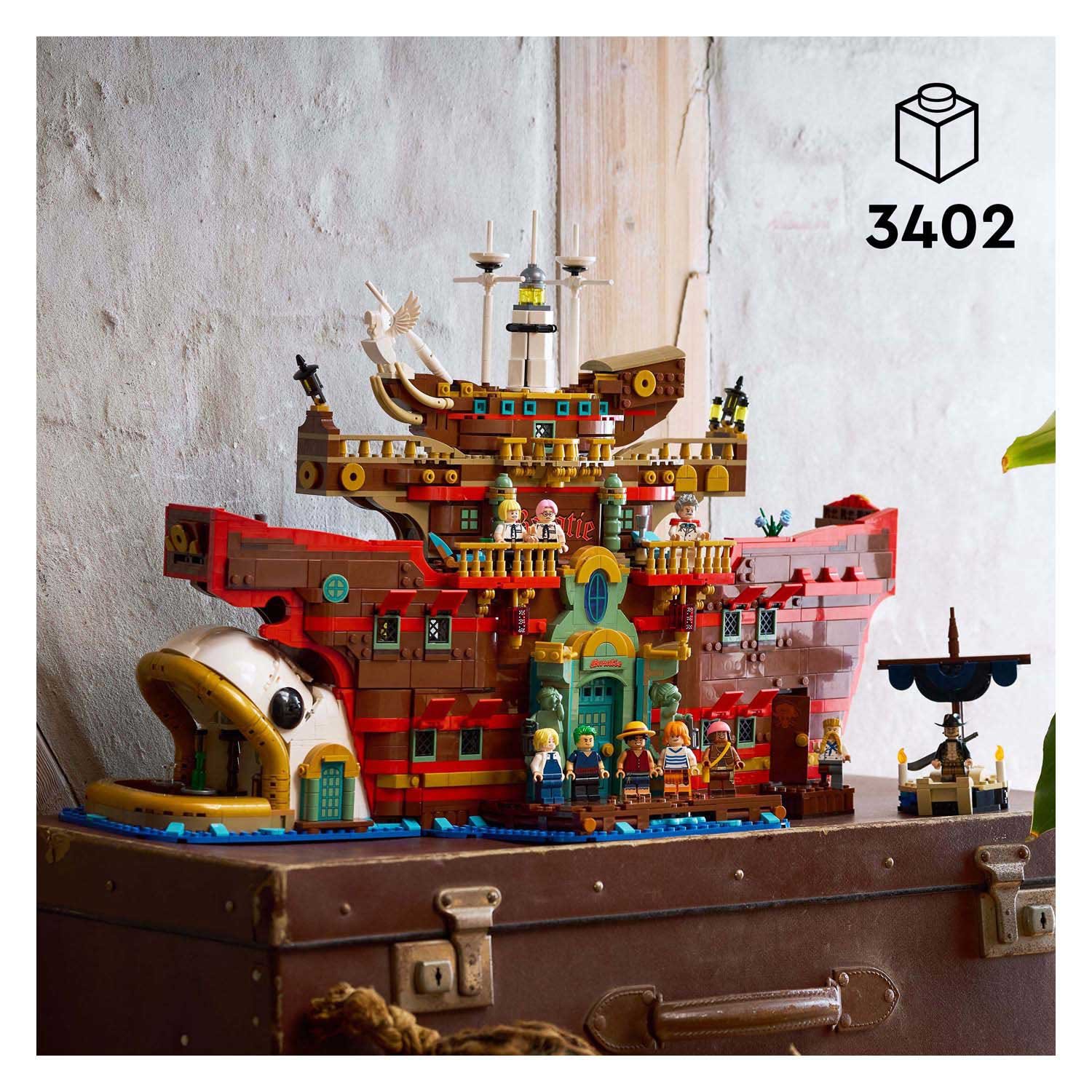 Ontdek de magie van de Grand Line met de LEGO One Piece 75640 Het Drijvende Restaurant Baratie – een meesterlijke bouwset ontworpen voor volwassen fans van de iconische One Piece-wereld. Deze uitgebreide set met 3402 onderdelen laat je het beroemde drijvende restaurant uit de Netflix-serie tot in detail nabouwen. Van de levendige eetzaal tot de keuken van Zeff en een verborgen schatkamer: elke ruimte ademt authenticiteit en is perfect voor display én het naspelen van memorabele scènes.