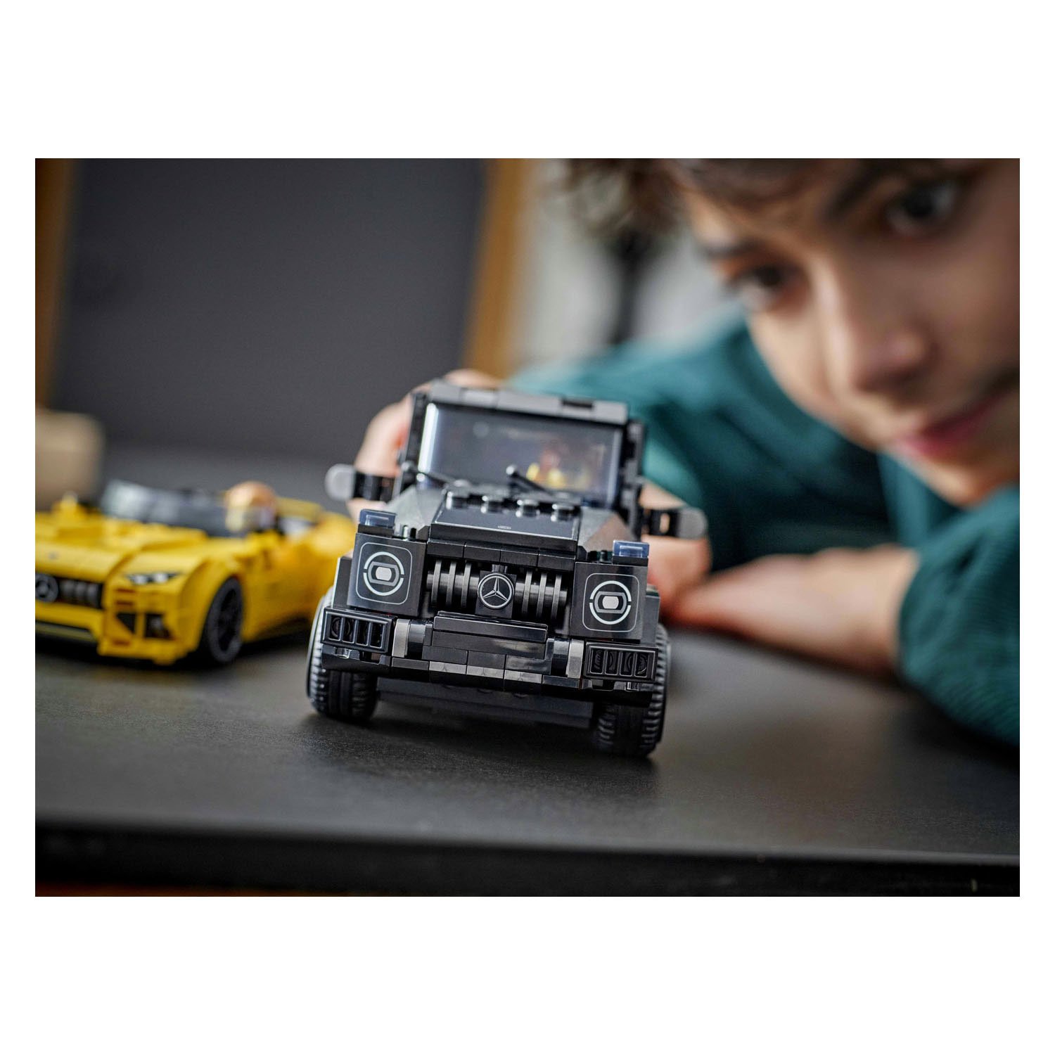 De LEGO Speed Champions 76924 Mercedes-AMG G 63 en Mercedes-AMG SL 63 set bevat een stoere zwarte Mercedes-AMG G 63 en een stijlvolle gele Mercedes-AMG SL 63 cabriolet roadster. Beide voertuigen zijn voorzien van herkenbare en nauwkeurig uitgewerkte kenmerken, zoals de karakteristieke grille, sportieve motorkap, gedetailleerde wielen en een realistisch interieur. Dankzij de twee inbegrepen minifiguren – elk in officiële Mercedes-AMG outfit – kunnen kinderen meteen zelf racen, verhalen bedenken en zich onderdompelen in de wereld van snelheid en performance.