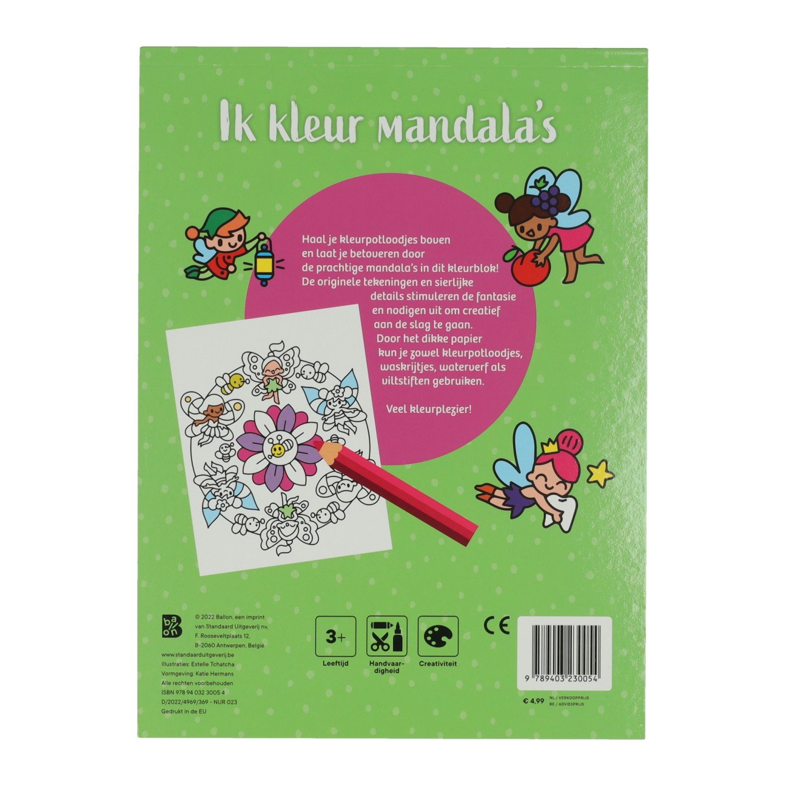Het Mandala’s Kleuren Elfen en Feeën Kleurboek is een betoverend kleurboek speciaal ontworpen voor jonge kinderen vanaf 3 jaar. Dit kleurboek combineert magische elfen en feeën met eenvoudige mandala’s, waardoor kleuren niet alleen leuk maar ook rustgevend en leerzaam wordt. Dankzij de vrolijke illustraties en overzichtelijke vormen stimuleert het Mandala’s Kleuren Elfen en Feeen Kleurboek de creativiteit, fantasie en fijne motoriek van kinderen.