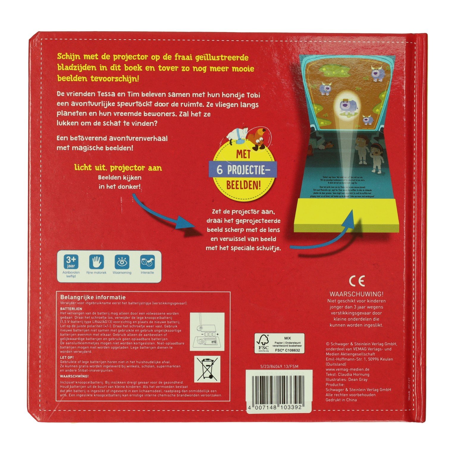 Ga mee op een magisch avontuur met Mijn Projectorboek Schatzoekers in de Ruimte! Dit unieke kinderboek combineert voorlezen met een interactieve projector, waardoor verhalen écht tot leven komen. Terwijl je samen leest over Tessa, Tim en hun hond Toby, gebruik je de projector om verborgen illustraties te onthullen. Zo wordt Mijn Projectorboek Schatzoekers in de Ruimte niet alleen een verhaal, maar een complete beleving voor jonge ontdekkers vanaf 3 jaar.