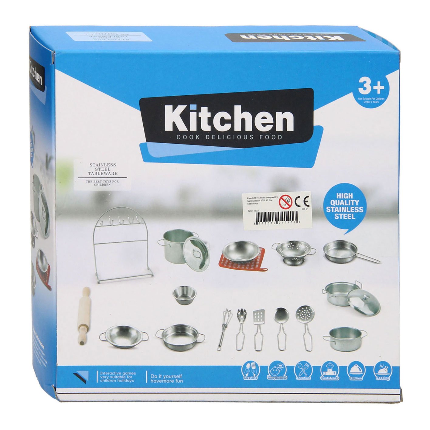 De Pannenset, 6dlg is de perfecte aanvulling voor iedere speelgoedkeuken en zorgt voor urenlang speelplezier. Met deze complete pannenset kunnen kinderen hun eigen culinaire avonturen beleven en hun fantasie de vrije loop laten. De pannenset is speciaal ontworpen voor kleine chefs vanaf 3 jaar en combineert speelplezier met een realistische uitstraling. Dankzij het stevige metalen materiaal voelt deze pannenset extra echt aan, wat het rollenspel nog leuker maakt. Of je kind nu een uitgebreide maaltijd bereidt of een simpel gerecht serveert, met de pannenset is alles mogelijk.