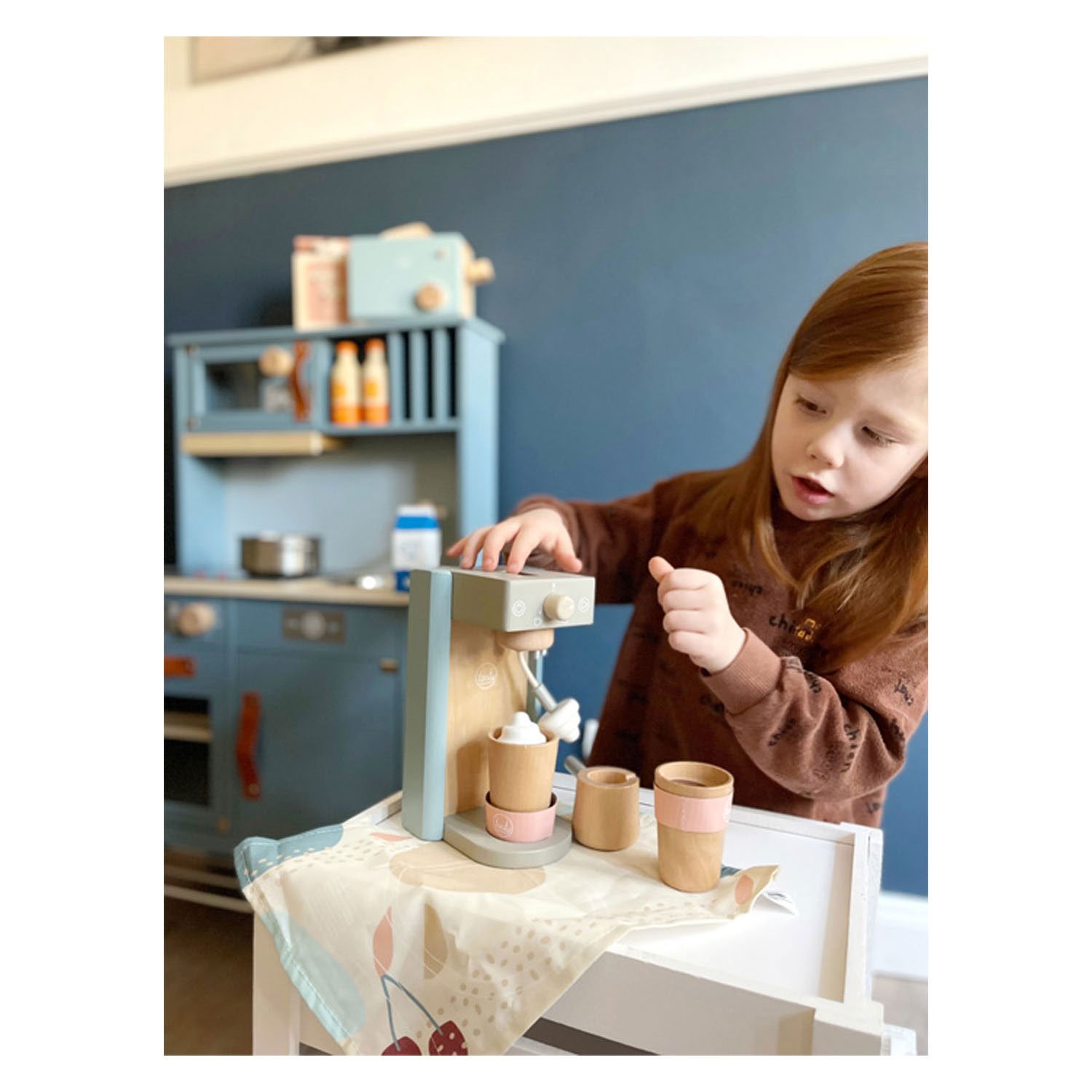 De Small Foot Speelgoed Baristaset “Tasty” is gemaakt van stevig hout en bevat leuke accessoires zoals twee coffee-to-go bekers en een suikerpot met deksel en lepel. De magnetische functie zorgt voor extra speelmogelijkheden en maakt het koffiezetten nog realistischer. Het ontwerp is kleurrijk, speels en sluit perfect aan bij de belevingswereld van jonge kinderen vanaf 3 jaar. Door het compacte formaat past het koffiezetapparaat in elke speelkeuken.